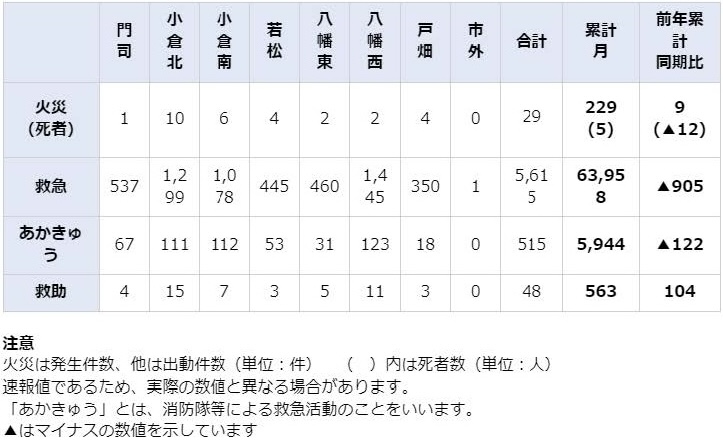 ●昨年に発生した市内災害状況です 参考:北九州市消防局・更新日・2026年2月10日